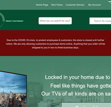 Binary Electronics is a digital e-commerce website that functions similarily to Easy Groceries, but it specializes in selling electronics and home entertainment devices as well as accessories for vehicles. This was done as part of a final Capstone Project. It utlizes jQuery, JSON and Object Oriented PHP and it also handles back end server data.