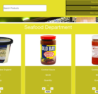 A digital grocery store website that is similar to the functionality of MAD Movies. It comes with its own design, color scheme and branding. This project utilizes JSON, handling back end server data. It displays products that are typically found in grocery and convenience stores and the user can pick its quantity and add it to their cart. Once added to cart, the counter at the top right of the header is updated to represent the amount of items in the user's cart. When the cart is clicked on, it allows the user to enter his/her name and then it thanks the user for using the service and displays their order number.